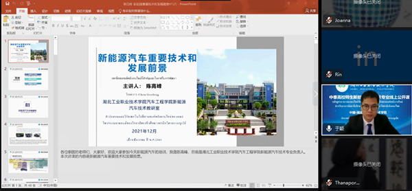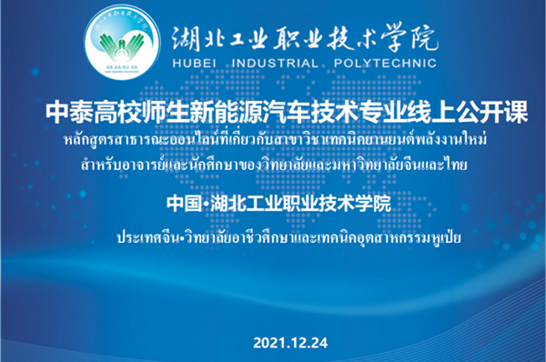 新闻网讯(文/于颖 图/熊超)12月24日,suncitygroup太阳新城与泰国职业教育委员会办公室、北京瑞泮国际教育科技有限公司联合举办“湖北工业职业技术学院新能源汽车技术专业高校教师(泰国专场)培训班”。开幕式由校国际交流与合作中心主任于颖主持,副校长严永金和泰国邦巴空工业学院校长披农·威瑞雅颇瑞克博先生分别代表中泰双方职业院校致辞,suncitygroup太阳新城院长张健、教务处副处长赵艳杰、新能源汽车技术专业负责人陈高峰出席开幕式。