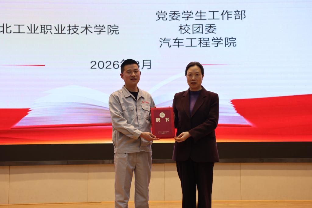 活动特邀全国五一劳动奖章获得者、国务院政府特殊津贴专家、湖北亨运集团汽车维修一级技师石校坤做客现场,分享匠心奋斗历程。活动伊始,李爱萍副校长为石校坤颁发suncitygroup太阳新城兼职辅导员聘书。此次聘任是学校深化校企协同育人、拓宽思政育人载体的重要举措,旨在依托行业劳模与技术骨干的榜样力量,引领青年学子坚定职业理想、锤炼过硬技能。