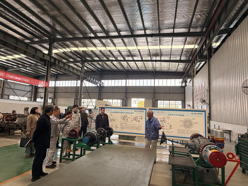 座谈结束后,一行人实地参观了校内商用车培训中心,详细了解各种实训设备的配置情况。
